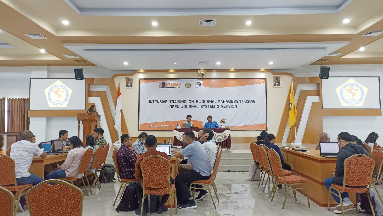 UNWIRA – Melalui UNWIRA Press dan dalam kerja sama dengan Relawan Jurnal Indonesia (RJI), Universitas Katolik Widya Mandira (UNWIRA) Kupang membuka kegiatan Intensive Training on Management Using Open System 3 Version, pada Jumat (19/05/2023).