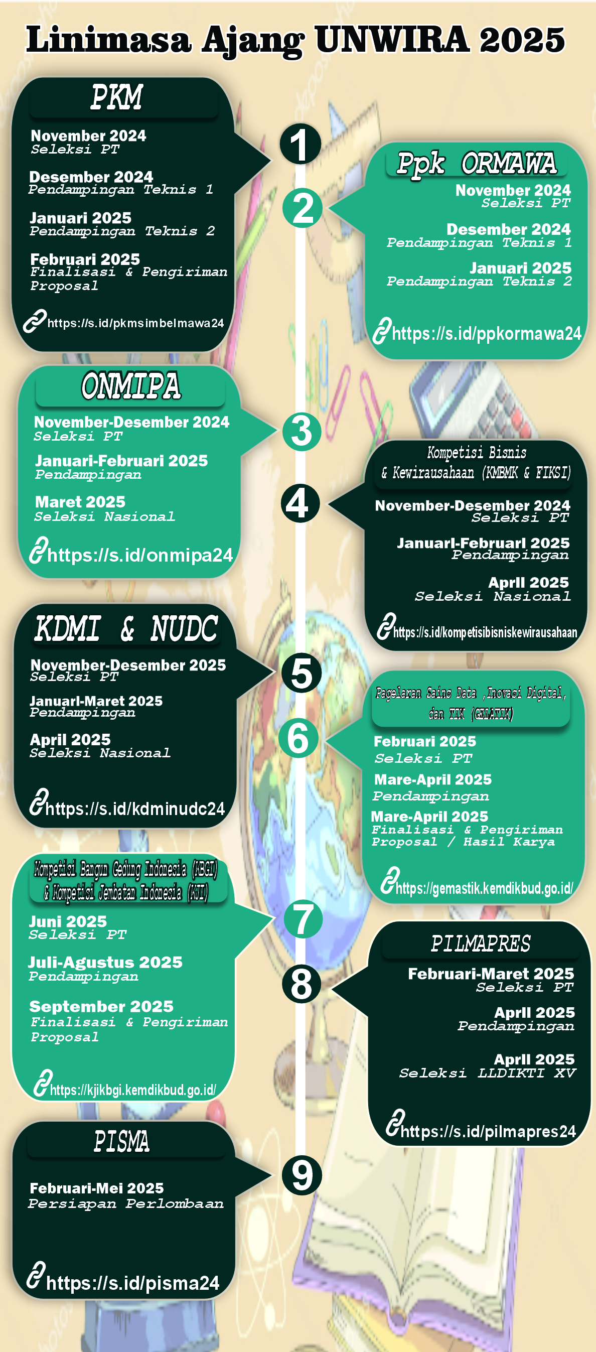 https://s.id/pkmsimbelmawa24 https://s.id/pilmapres24 https://s.id/onmipa24 https://s.id/kdminudc24 https://kjikbgi.kemdikbud.go.id/ https://gemastik.kemdikbud.go.id/ https://s.id/kompetisibisniskewirausahaan https://s.id/pisma24 https://s.id/ppkormawa24