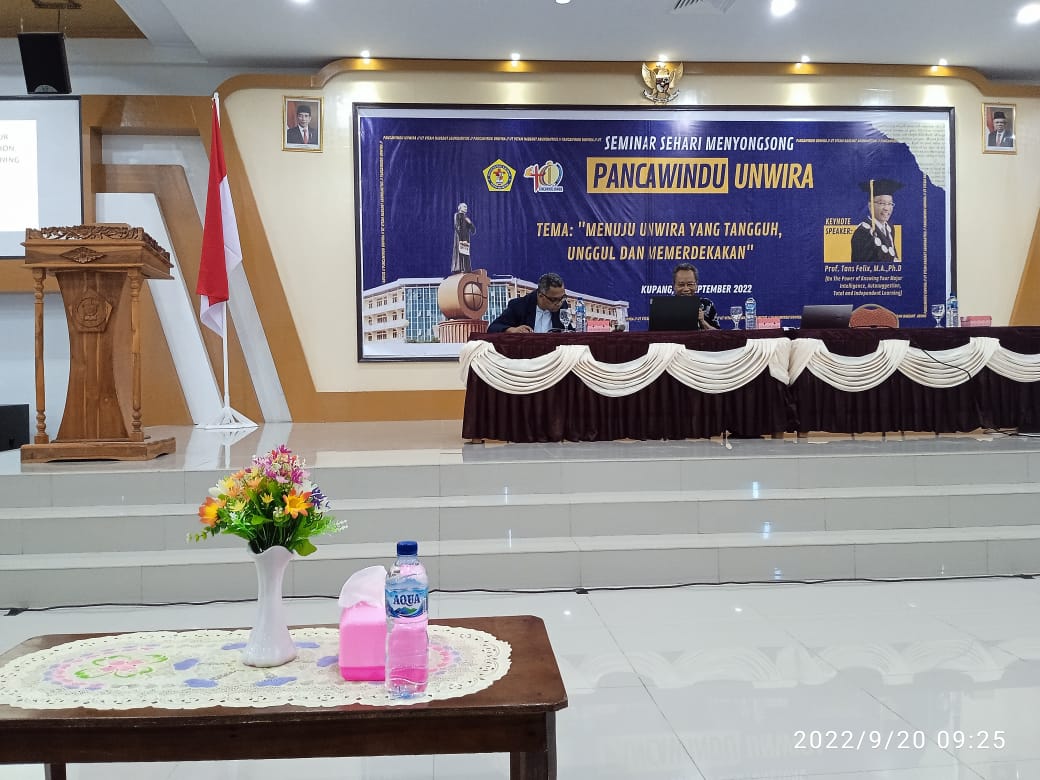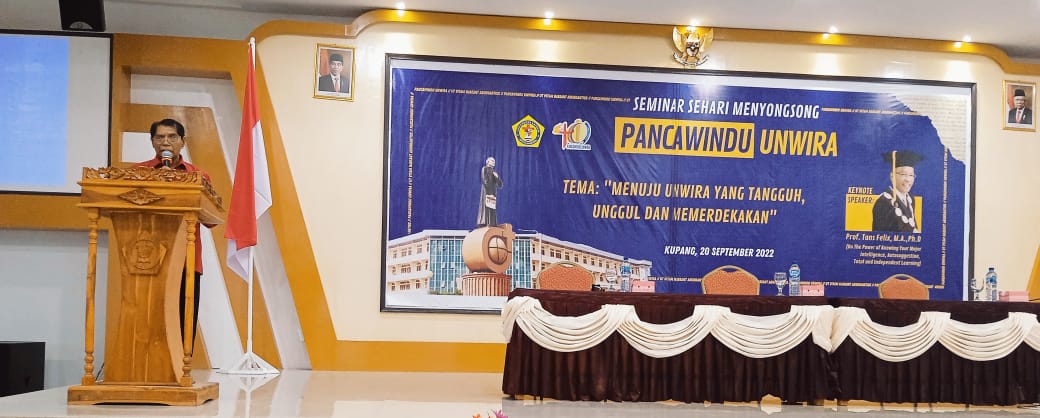 UNWIRA – Menyongsong Pancawindu, UNWIRA menyelenggarakan seminar sehari yang bertajuk “Menuju UNWIRA yang Tangguh, Unggul, dan Memerdekakan” pada Selasa (20/09/2022). Seminar itu dihadiri oleh segenap Civitas Academica UNWIRA dan beberapa narasumber, termasuk Prof. Tans Felix, M.A., Ph.D sebagai Keynote Speaker. Seminar itu dilaksanakan di Ballroom St. Hendrikus, Lantai 4 (Empat) Gedung Rektorat UNWIRA.