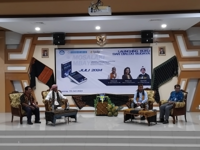 UNWIRA - Rektor Universitas Katolik Widya Mandira, P. Dr. Philipus Tule, SVD., tampil sebagai salah satu pembicara dalam peluncuran buku Mosalaki Mbay: Penyemai Identitas dan Kekuatan Budaya Masyarakat Adat (Cultivating The Identity and Cultural Resilience Of Indigenous Peoples) serta Dialog Budaya, yang diadakan di Aula St. Paulus, Gedung Rektorat UNWIRA, Jumat (19/07/2024). Pater Philipus hadir bersama kedua penulis buku Mosalaki Mbay, yakni Dr. Gabriel Ndawa, S.E., M.M., dan Nancy A. Florida, S.S., M.Pd., serta dua Mosalaki Mbay, Muhayan dan Jamaludin.
