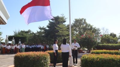 Upacara bendera HUT ke-80 RI di UNWIRA berlangsung khidmat sekaligus meriah dengan tambahan acara pembagian doorprize untuk busana terbaik dan petugas pengibat bendera.(ys)